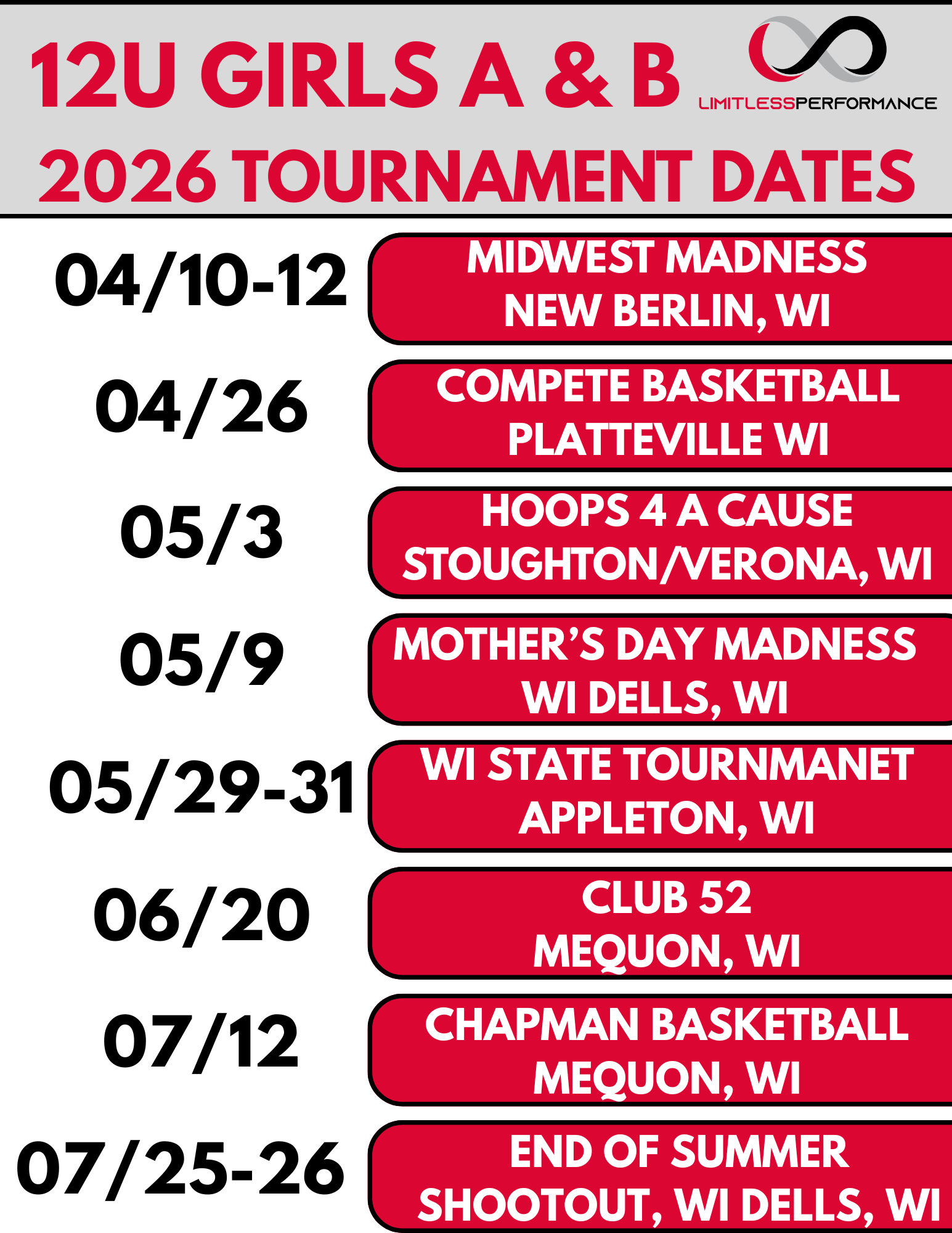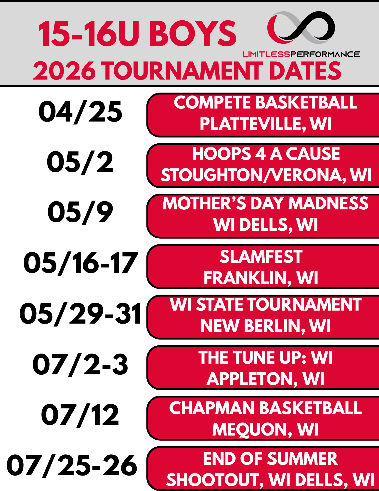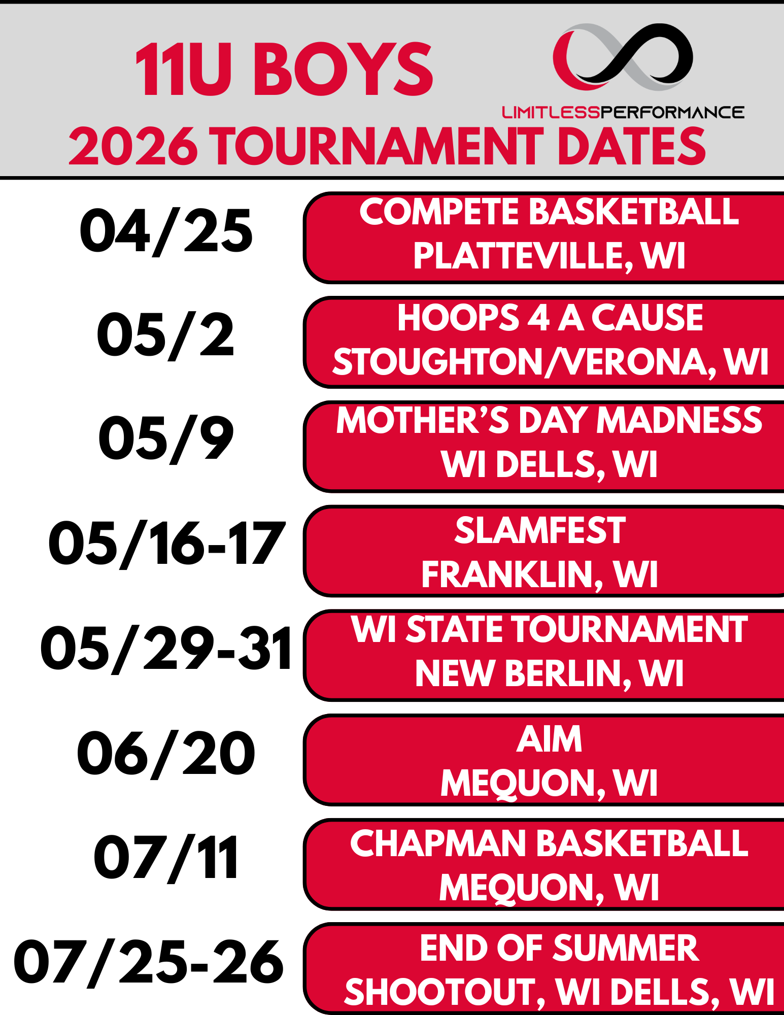 At Limitless Performance, we do our best to be thoughtful and transparent with families. Because many of our program costs are committed well before the season begins—including facility rentals, tournament registrations, staffing, equipment, and administrative expenses—we are unable to offer refunds once payments are processed.